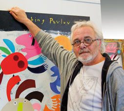 feestelijke start van de expositie met zijn schilderijen, glasobjecten